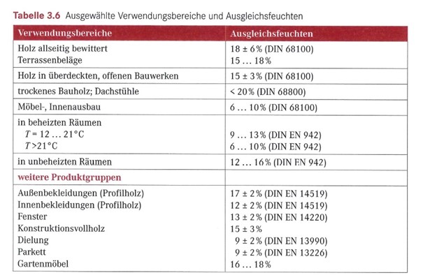 Grundsätzlich soll planerisch Holz mit derjenigen Feuchte eingebaut werden, die sich während des Gebrauchs langfristig einstellt. Dies ist z. B. auch in der DIN 68800-2 (Holzschutz) geregelt, die besagt: