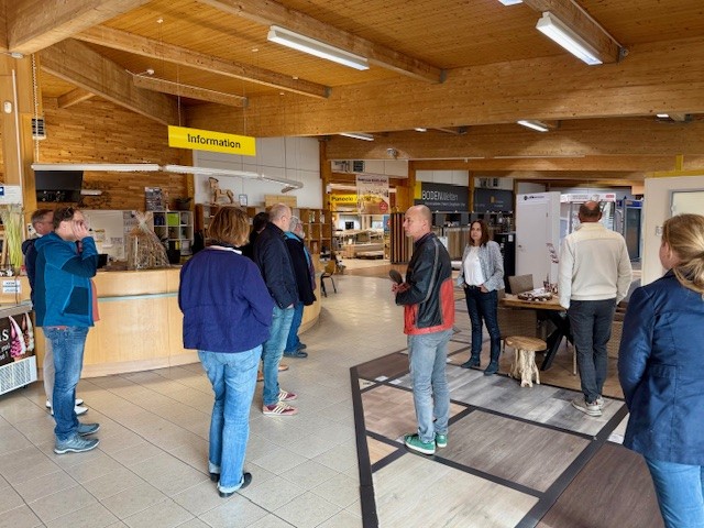 Gastgeber in diesem Jahr war das Holz-Zentrum Theile in Elsterwerda. Die beiden Geschäftsführer Antje Kuna-Theile und Thomas Buberek gaben bei der Betriebsbesichtigung einen interessanten Einblick in die spannende Entwicklung des Unternehmens von der Nachwendezeit bis heute.
