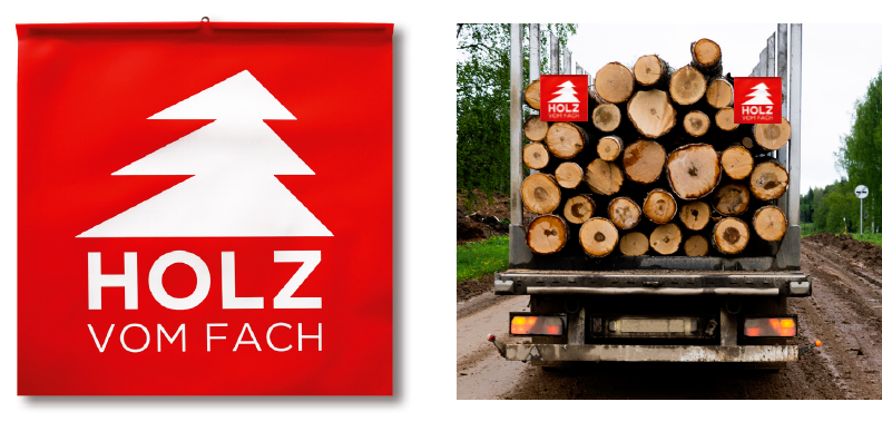 Unsere PVC Warnflaggen kennzeichnen nicht nur den Ladungsüberhang Ihres Fuhrparks, sondern werben zeitgleich mit gut sichtbarem Holz vom Fach-Logo. Auf diese Weise ist auf Anhieb zu sehen, dass Sie ein Mitglied im Gesamtverband Deutscher Holzhandel e.V. sind.