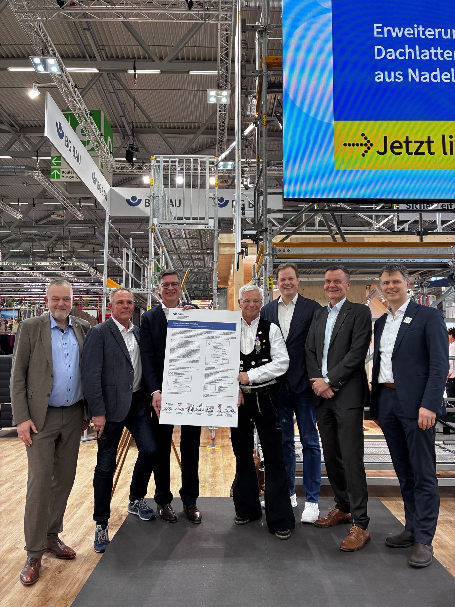 Am 26. Februar 2026 wurde ein wichtiger Schritt für mehr Sicherheit auf Deutschlands Baustellen vollzogen: Unter Beteiligung des Gesamtverbandes Deutscher Holzhandel (GD Holz) haben führende Verbände der Holzwirtschaft aus Handwerk, Handel und Industrie gemeinsam mit dem Fachbereich Bauwesen der DGUV einen Anhang zur Dachlattenvereinbarung von 2022 verabschiedet. Dieser legt klare und einheitliche Anforderungen für keilgezinkte Dachlatten fest. Für den GD Holz war Geschäftsführer Thomas Goebel als Unterzeichner vor Ort.
